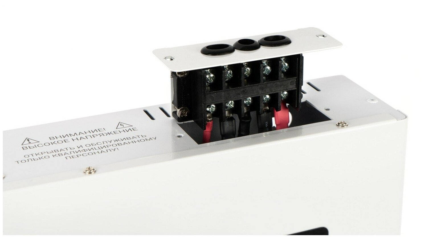 | Плюсы: | Очень внушительный вес, огромный медный трансформатор, надёжные реле с достаточным "запасом" по току, удобные доступы к колодкам под нормальные кольцевые клеммы. Внутренняя коммутация — на проводах 10мм, с некоммутируемыми рабочим нулём, всё сделано очень аккуратно и качественно. Возможность повернуть экран на 90 градусов, и повернуть верхнюю крышку так, чтобы и все показания читались штатно, и надписи были не "вверх ногами". Штатные выступы для горизонтального размещения либо крепления на стену — прекрасно "работают" в качестве кабель-органайзеров.