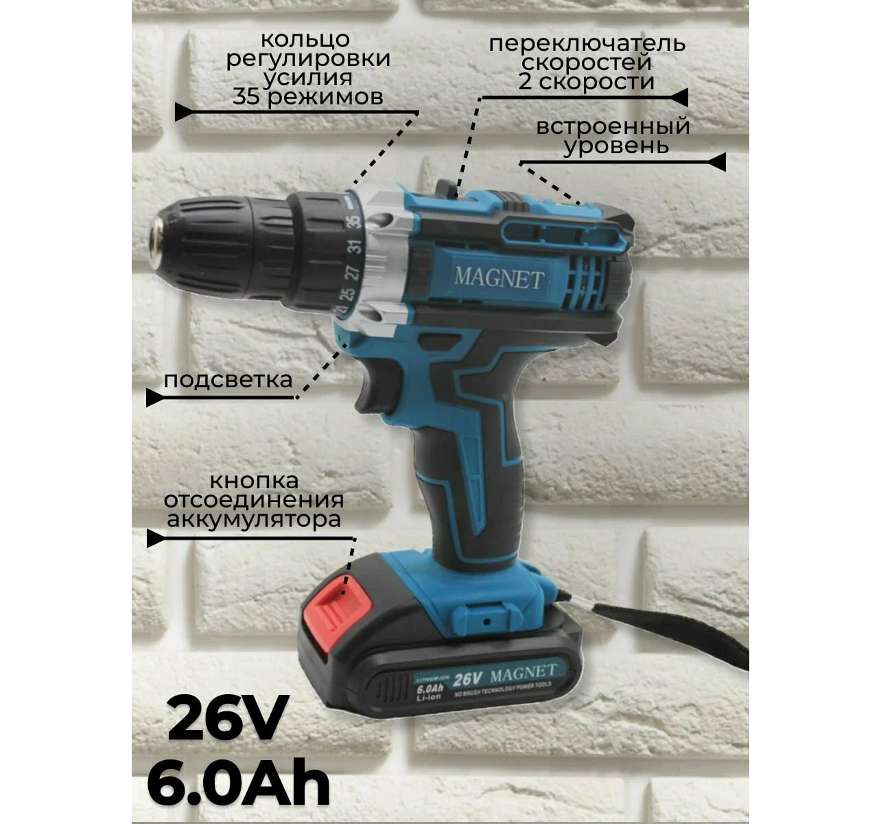Дрель-Шуруповерт аккумуляторный 26V с набором 100+ инструментов в комплекте 6 А.Ч 40HM с 2 акб(li-ion) интересное: