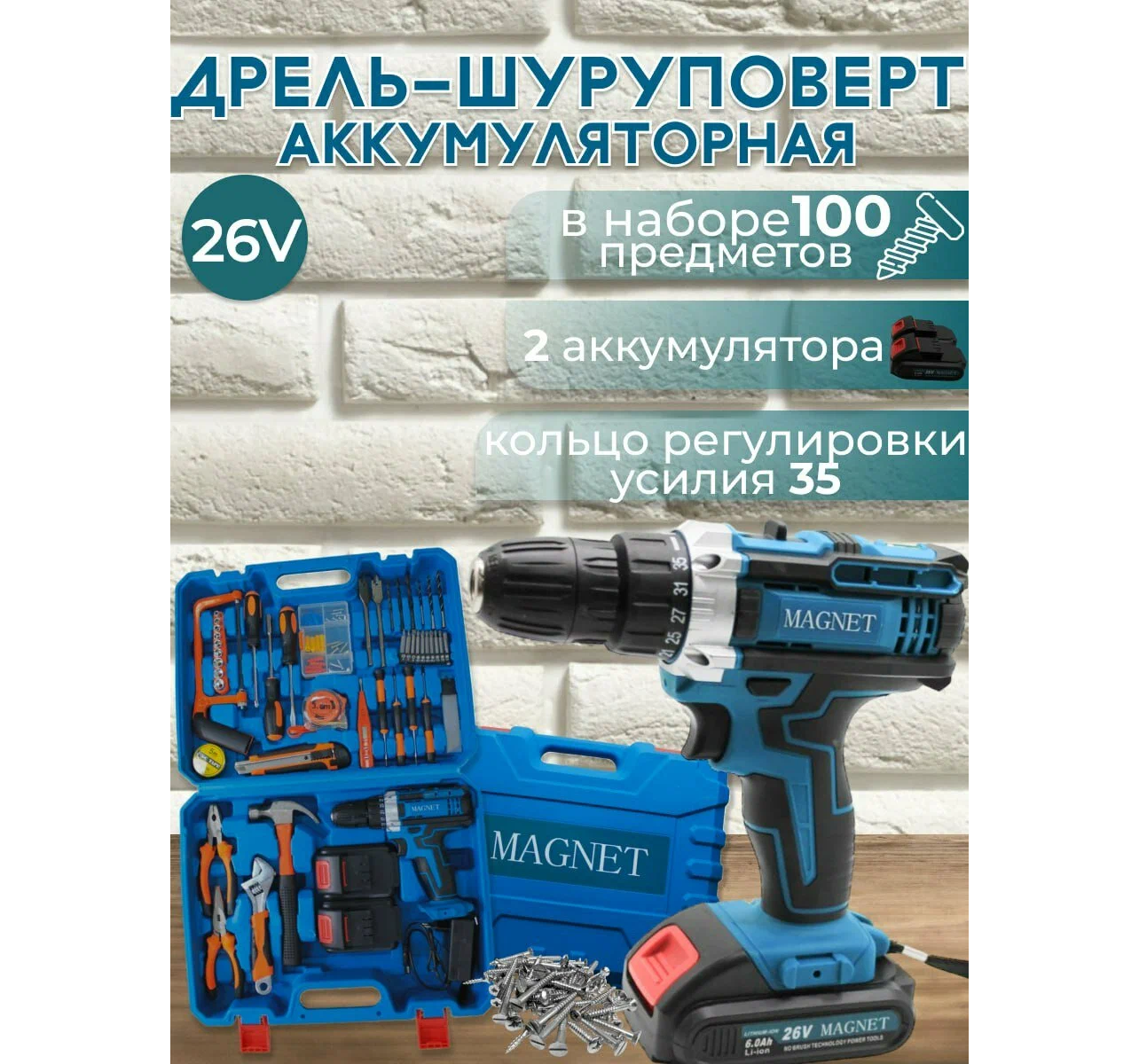 Дрель-Шуруповерт аккумуляторный 26V с набором 100+ инструментов в комплекте 6 А. Ч 40HM с 2 акб(li-ion)