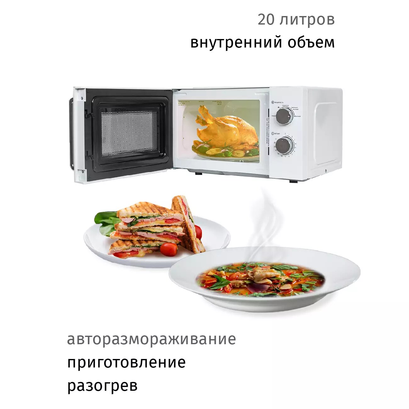 Микроволновая печь FS MWO D 20.10 WH, Сенсорное управление, 6 программ для приготовления, антипригарная эмаль, таймер, блокировка от детей.