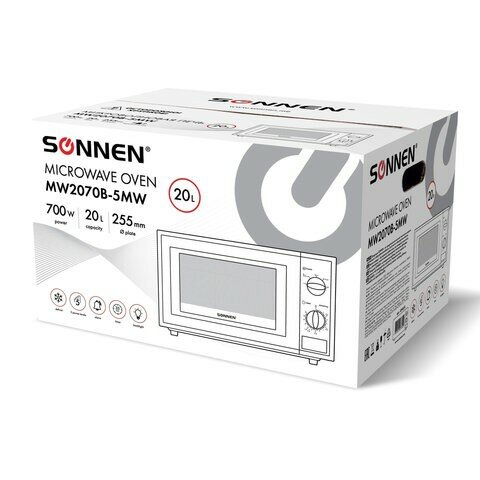 Микроволновая печь SONNEN MW2070B-5MW 20 л, 700 Вт, таймер, механическое управление, белая 454654