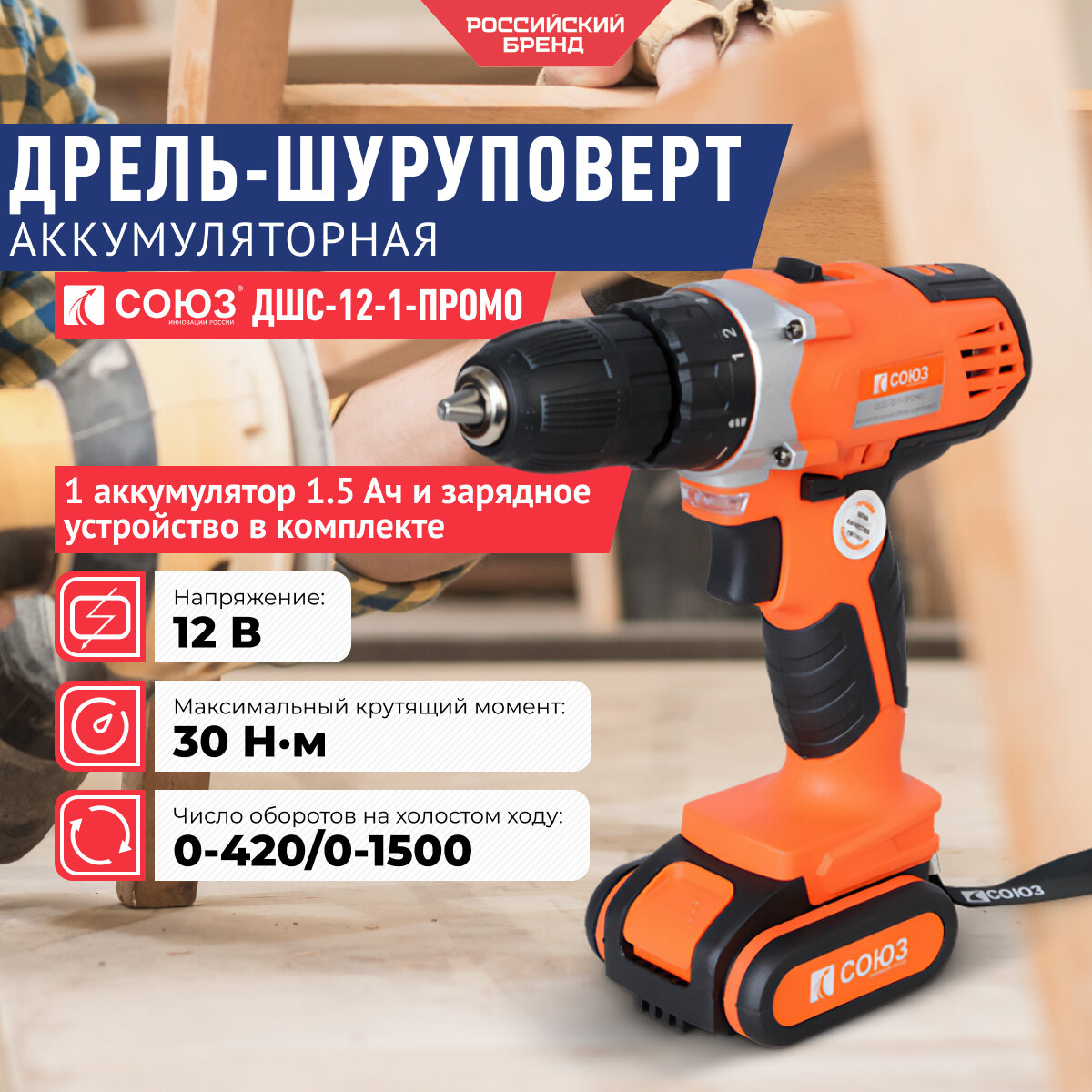 Аккумуляторный шуруповерт СОЮЗ ДШС-12-1-ПРОМО интересное: