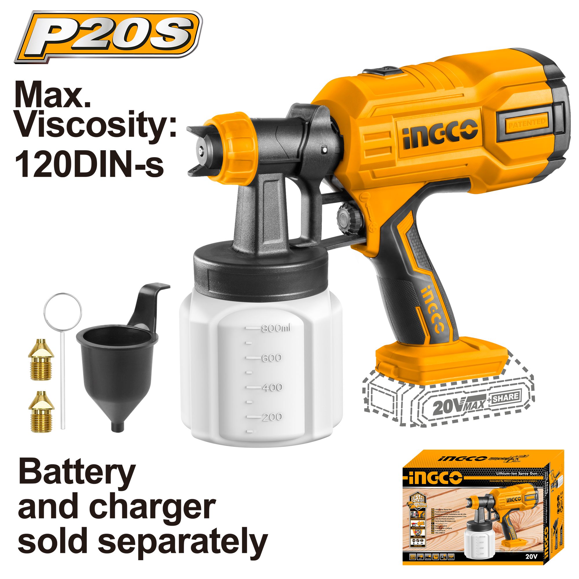 Купить Краскопульт аккумуляторный INGCO CSGLI2003 20 В 120DIN