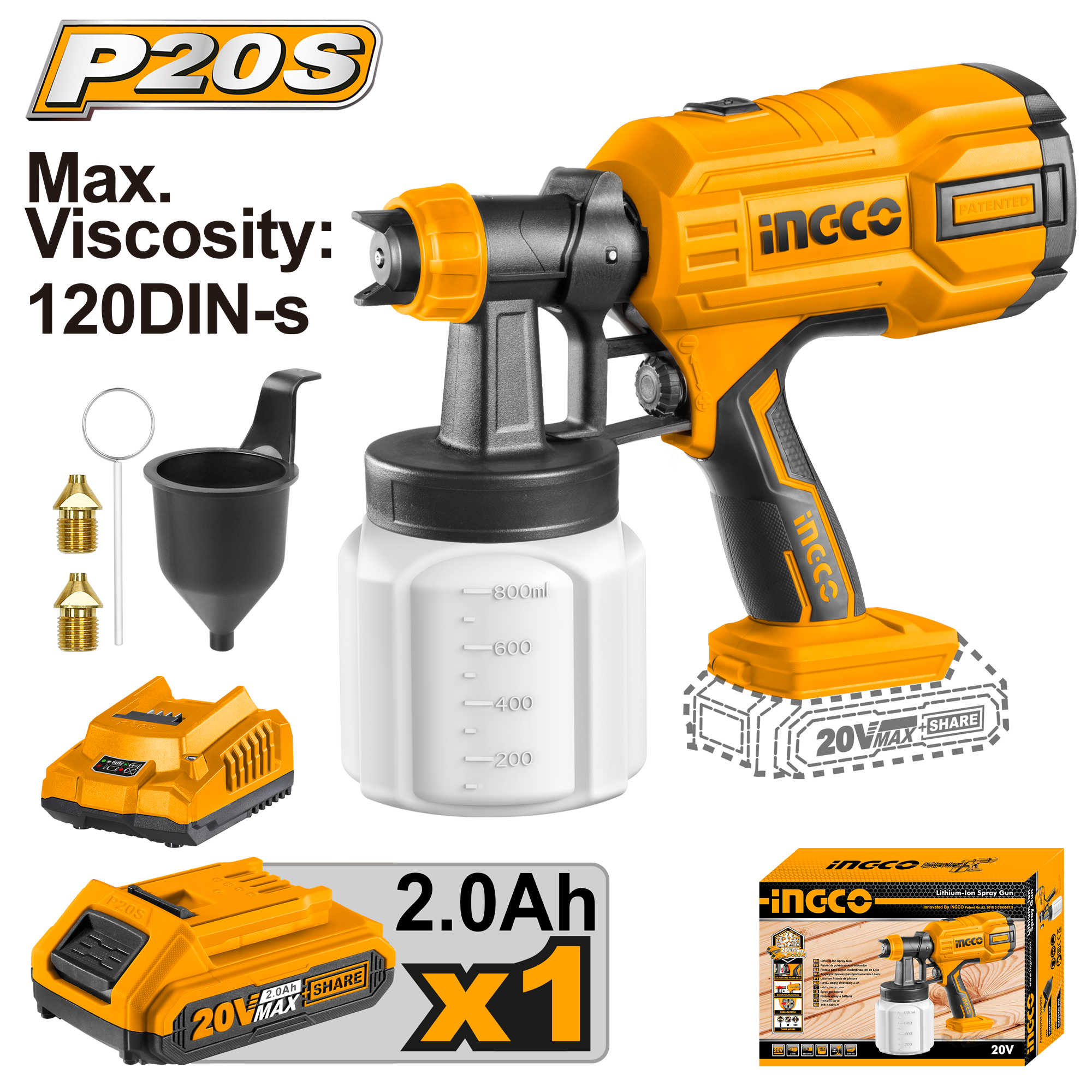Купить Краскопульт аккумуляторный INGCO CSGLI20406 20 В 120DIN 1x2 Ач