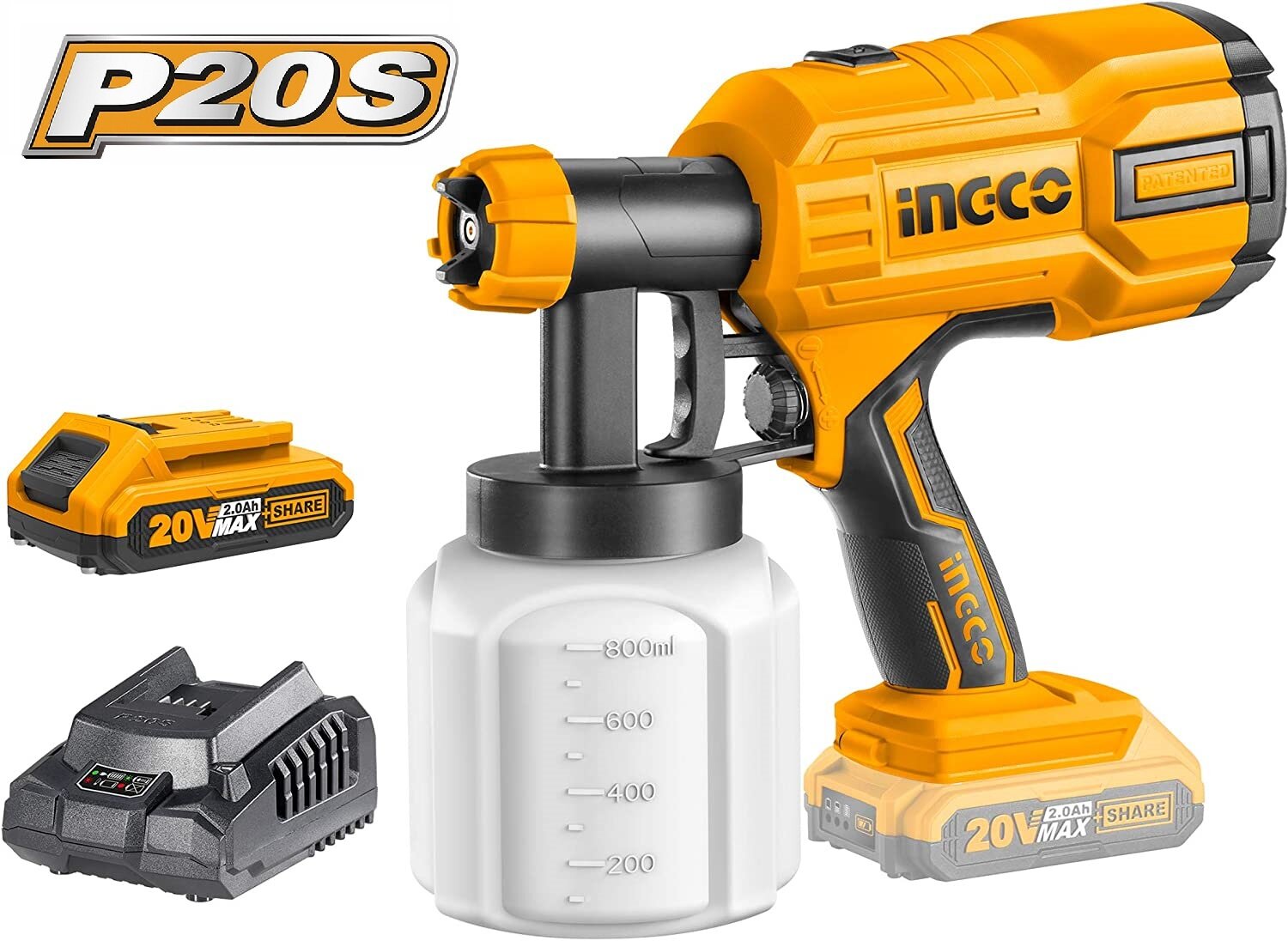 Краскопульт аккумуляторный Ingco CSGLI20402 20 В, 0,1-0,2 бар, 0,8 л, 40 DIN