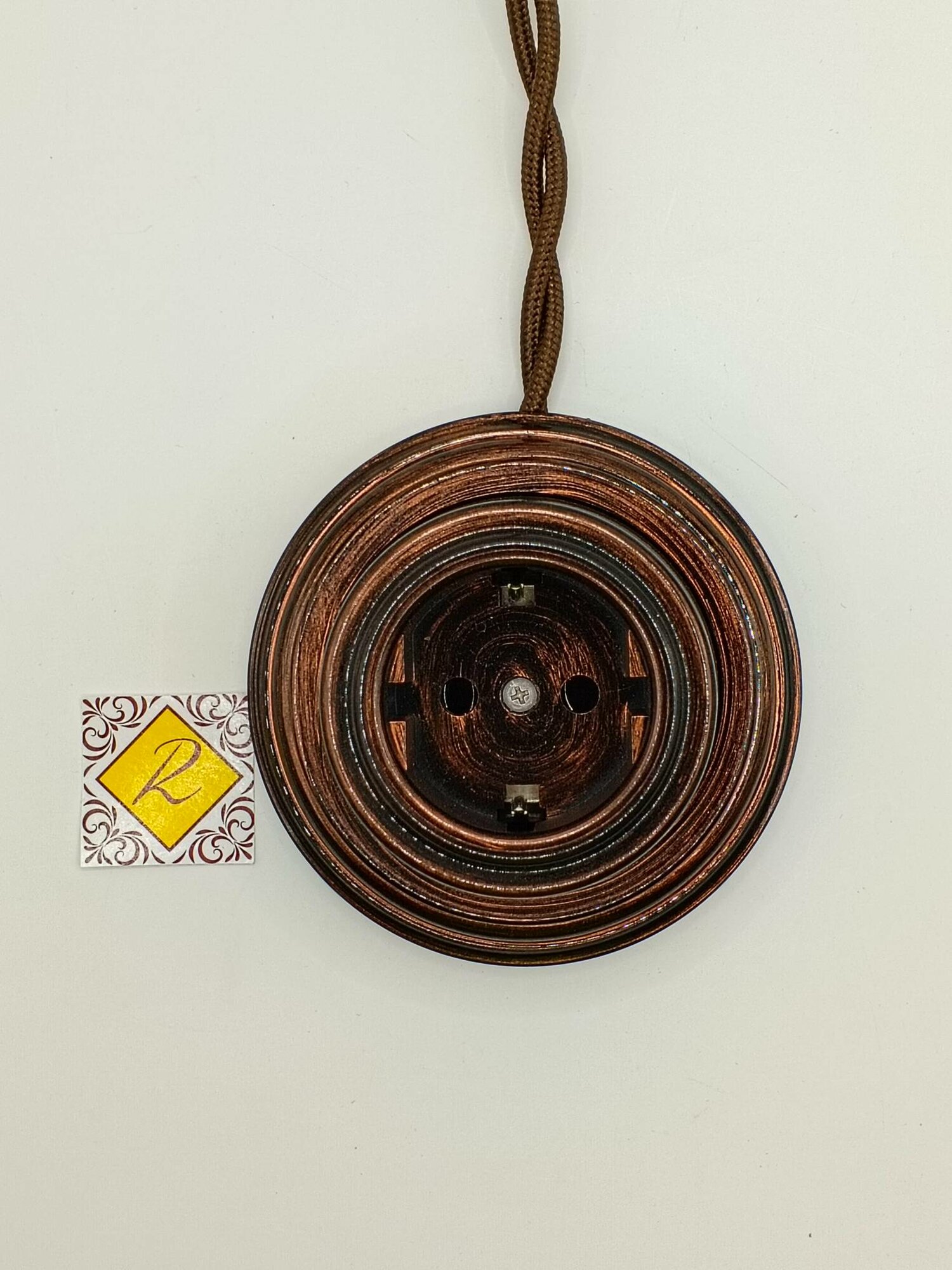 Винтажная розетка с заземляющим контактом, пластик, 16А, 250В, BIRONI B1-101-22, цвет Коричневый