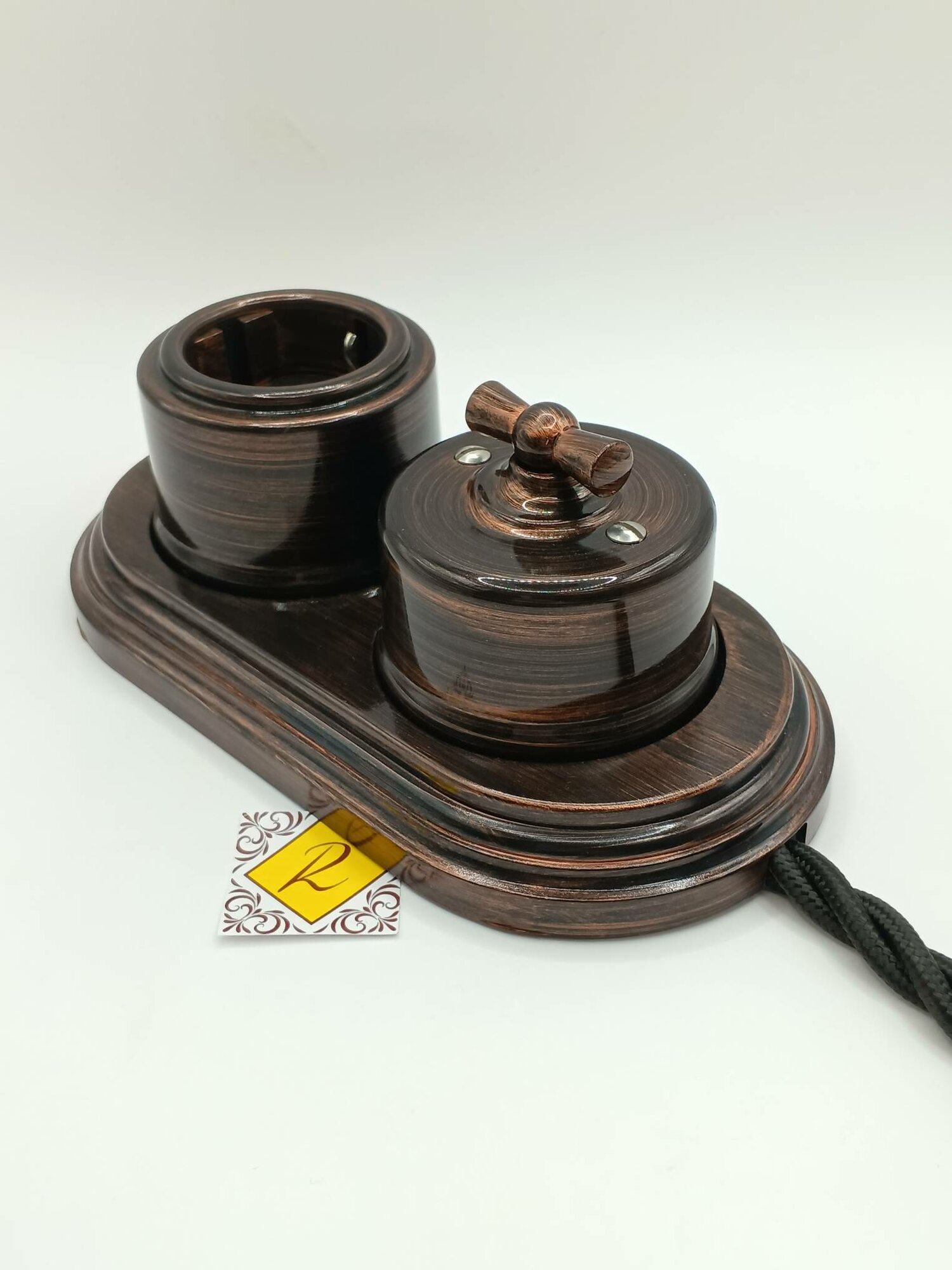 Розетка двойная ретро керамическая Арбат с заземлением черная, Interior Electric SCIE/W-03-2