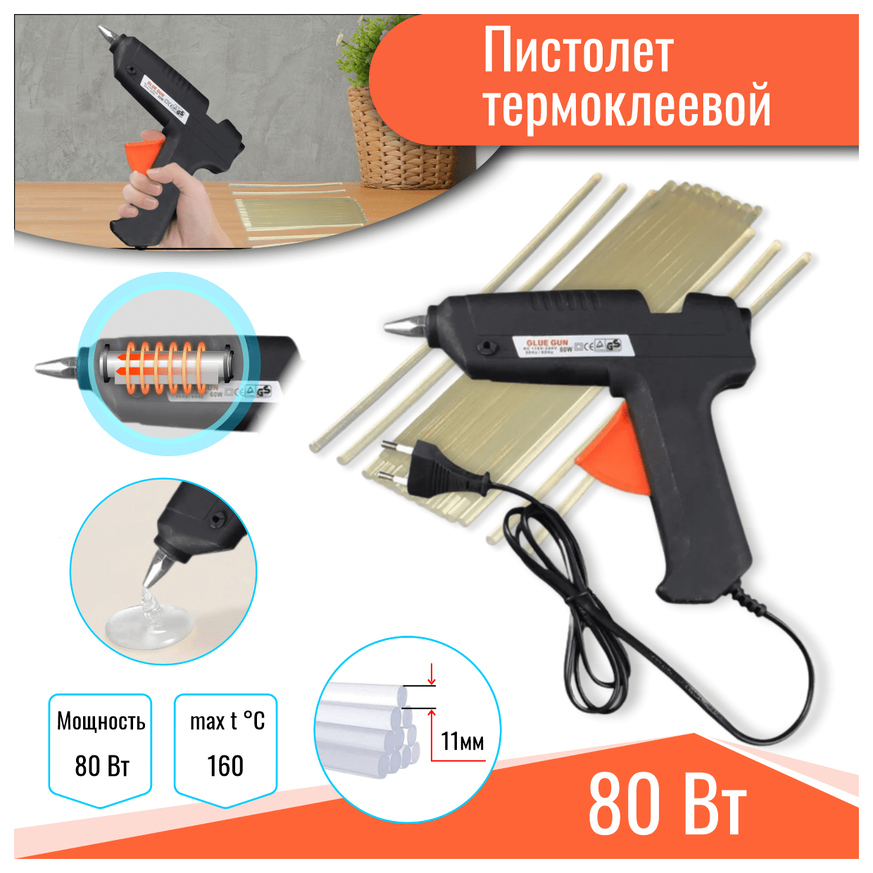 Клеевой пистолет для творчества, термопистолет 7 мм