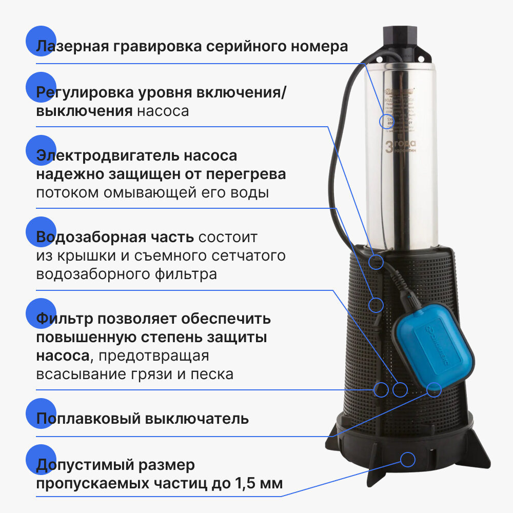 | Функции | защита от перегрева / защита от сухого хода / поплавковый выключатель |