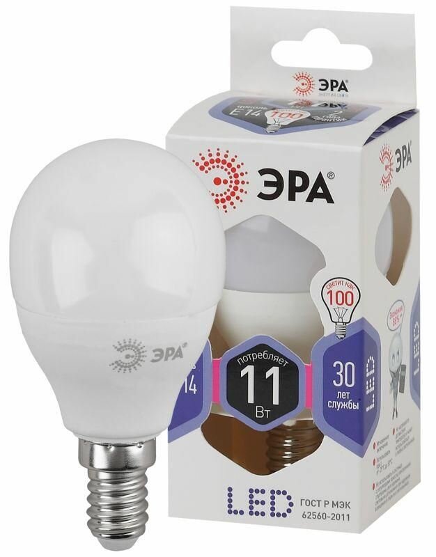 Лампа светодиодная P45-11W-860-E14 шар 880лм, ЭРА Б0032990 (1 шт.)