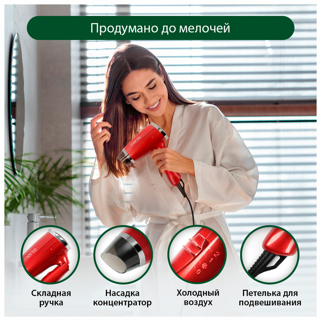 Фен Marta MT-1438 Red Ruby интересное: