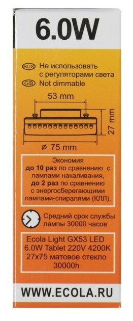 Ниже Вы можете прочитать отзывы на Лампа светодиодная ECOLA Light GX53 6,0W Tablet 220V 4200K 27x75 матовое стекло 30000h, ознакомится с подробными характеристиками, посмотреть интересные обзоры и фотографии на Лампа светодиодная ECOLA Light GX53 6,0W Tablet 220V 4200K 27x75 матовое стекло 30000h.