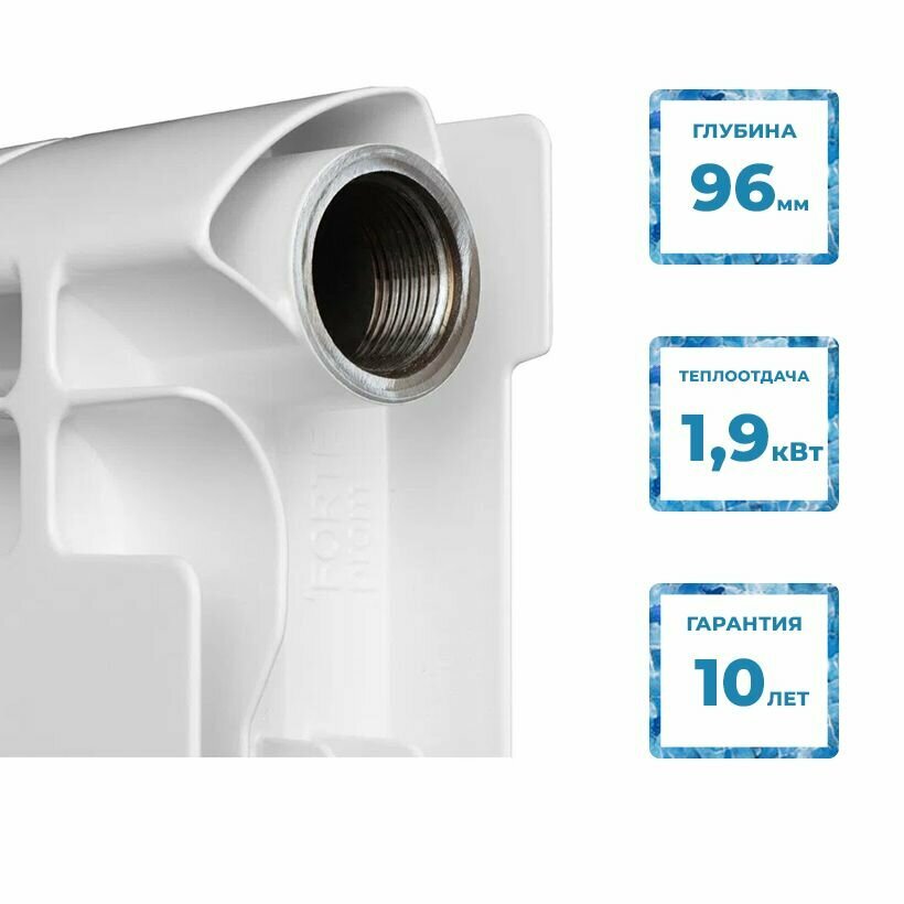 Радиатор биметаллический секционный Space 500 10 секций параметры 561х800х90 боковое подключение Сантехническая нить 20 м