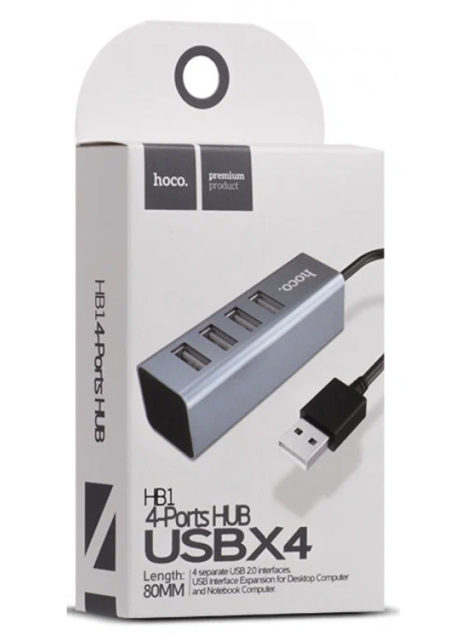 Купить HUB разветвитель HOCO HB1, USB to 4USB 2.0, (USB 2:0 - 480 Мбит/с), 0.8m, серый