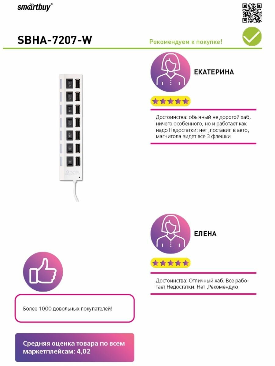 Ниже Вы можете прочитать отзывы на Концентратор USB 2.0 Smartbuy SBHA-7207-W, ознакомится с подробными характеристиками, посмотреть интересные обзоры и фотографии на Концентратор USB 2.0 Smartbuy SBHA-7207-W.