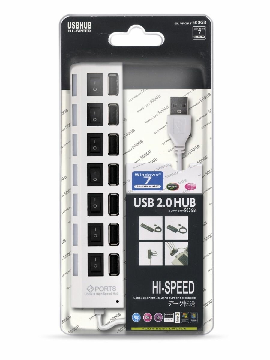 Разветвитель USB 2.0 HUB Smartbuy с выключателями, 7 портов, СуперЭконом, белый, SBHA-7207-W