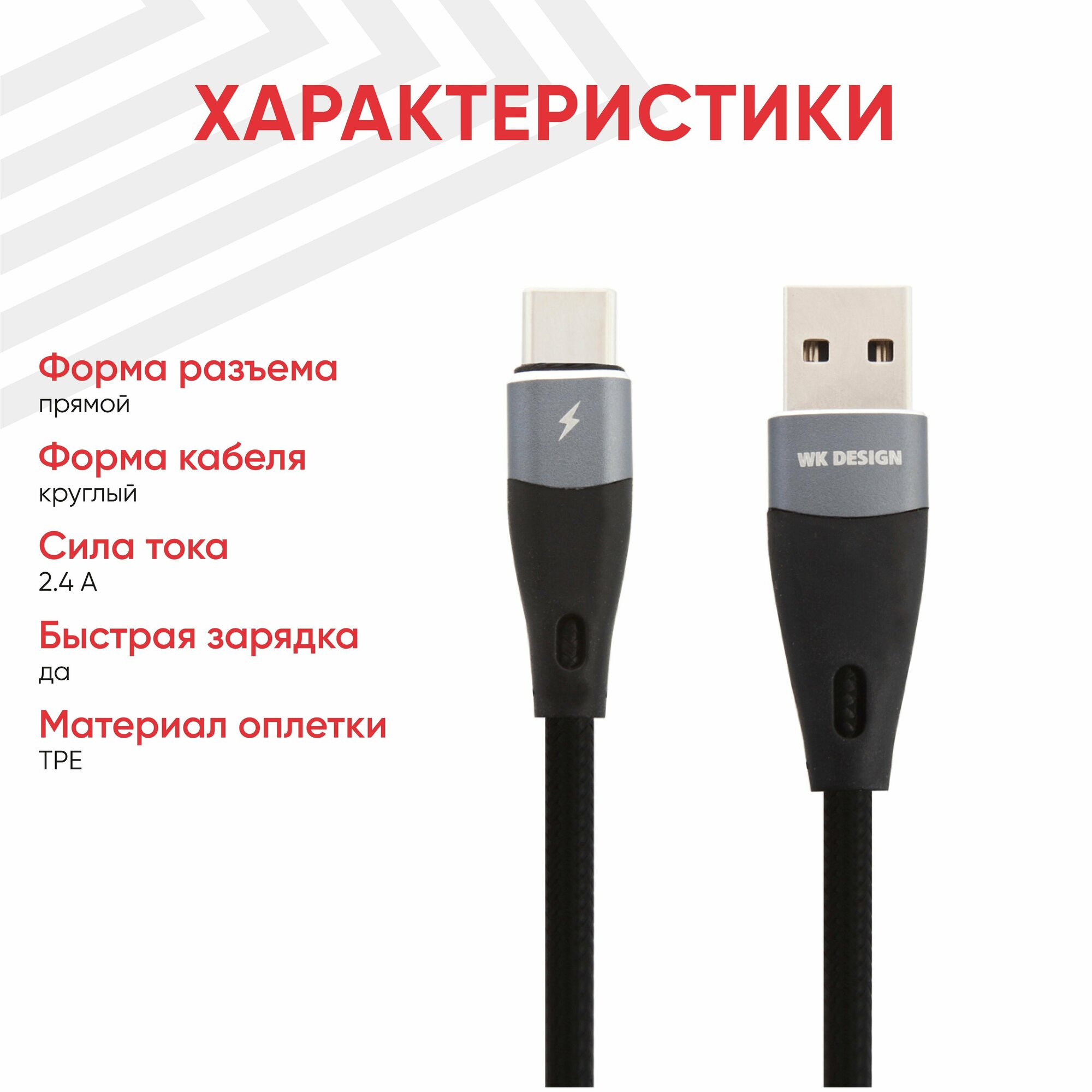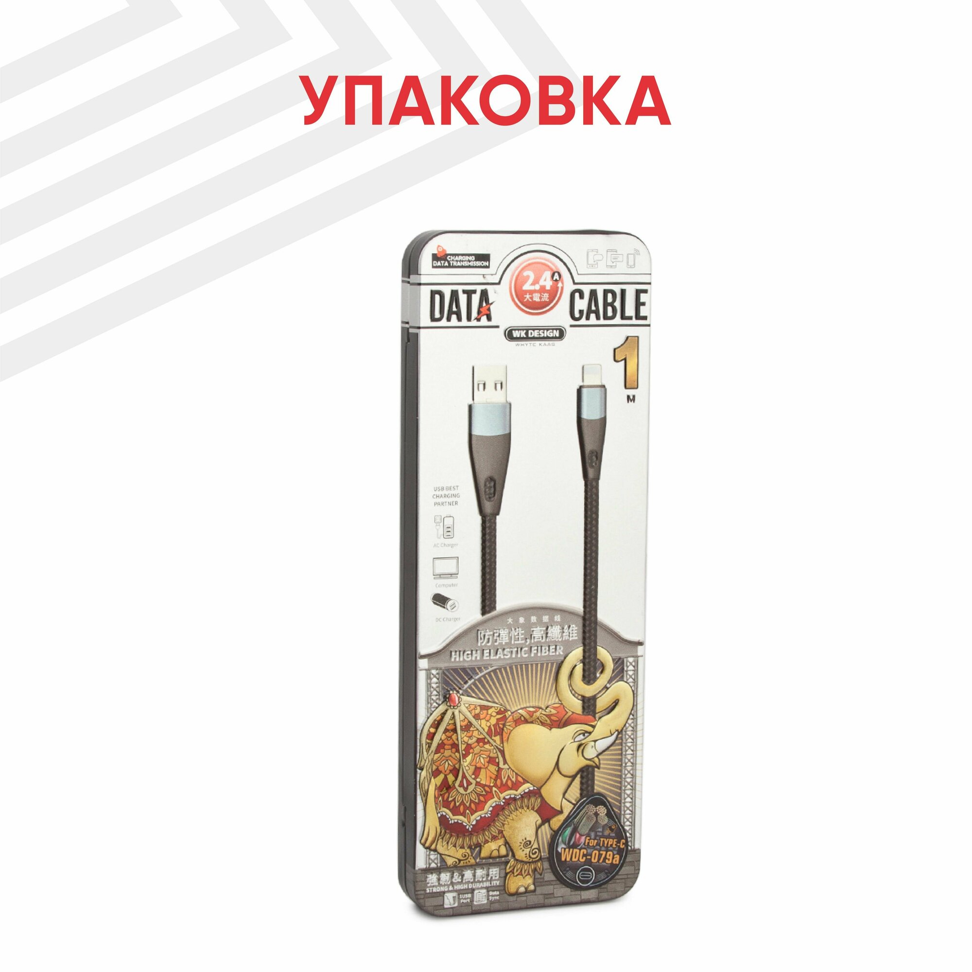 Кабель USB WK Elephant WDC-079a Type-C 2.4A 1м TPE (черный) интересное: