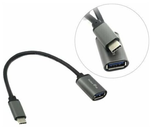 Кабель-адаптер Telecom Type-Cm --> USB 3.0 Af, OTG, 1,5A, 5,0Gbps, Alum grey 0,2m (TC409M)