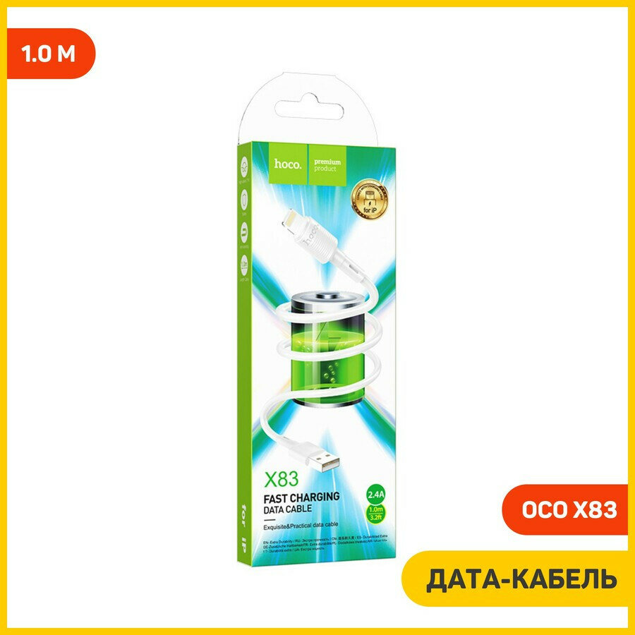 Кабель USB HOCO X83 Victory USB - Lightning, 2.4А, 1 м, белый