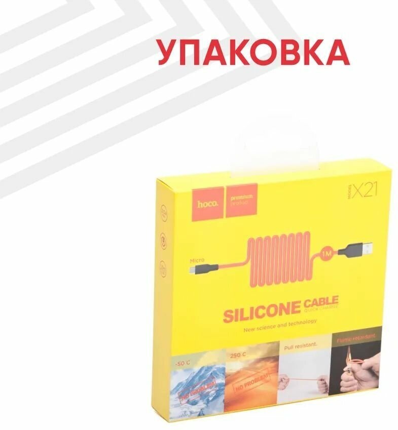 Кабель USB, micro USB, Hoco X21 Silicone, для HTC, Samsung, 100 см, красный интересное:
