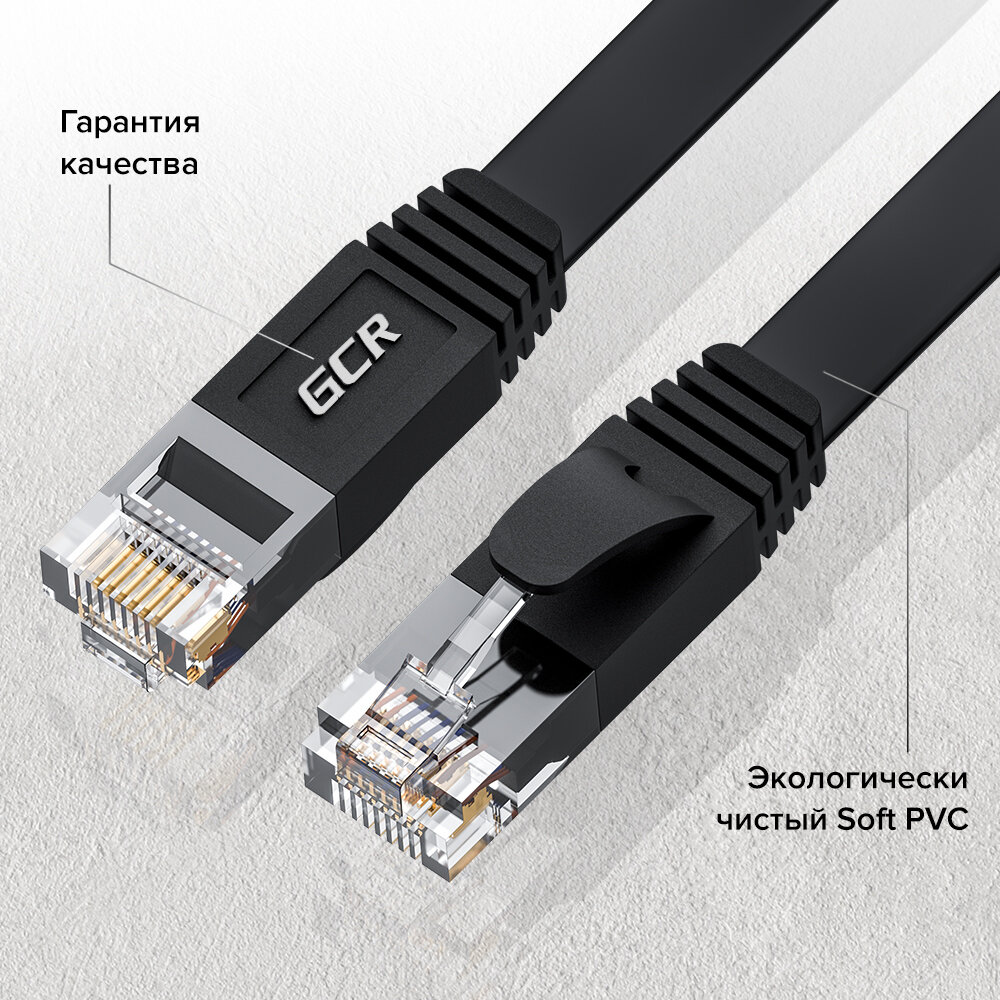 GCR Патч-корд PROF плоский прямой 20.0m, UTP медь кат.6, черный, 30 AWG, ethernet high speed 10 Гбит/с, RJ45, T568B, GCR-52865 Greenconnect RJ45(m) - RJ45(m) Cat. 7 U/UTP PVC 20м (GCR-52865)