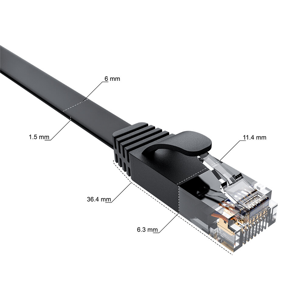 Патч-корд Gcr PROF плоский прямой 10.0m, UTP медь кат.6, черный, 30 AWG, ethernet high speed 10 Гбит/с, RJ45, T568B