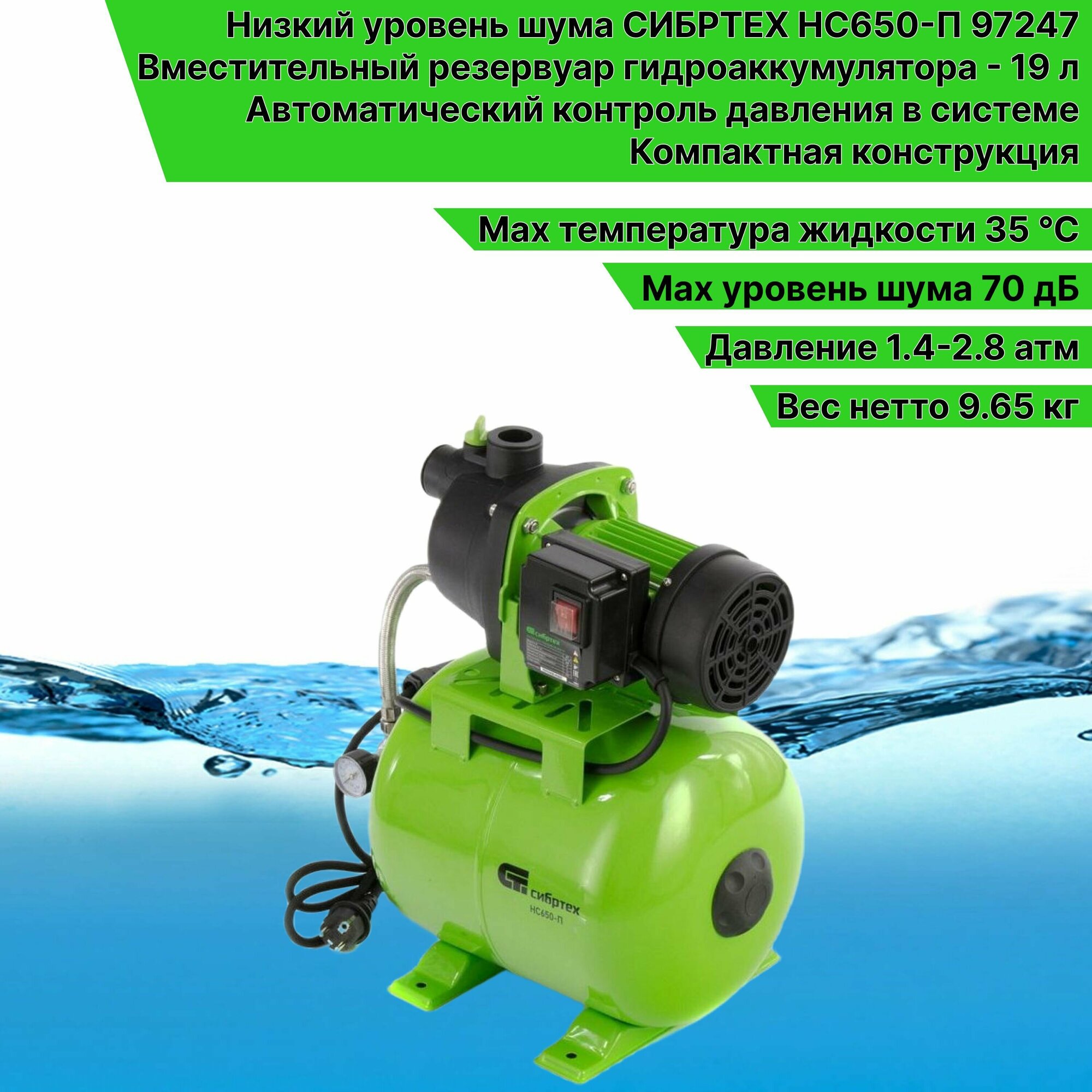 Насосная станция НС650-П, 650 Вт, напор 37 м, 3200 л/ч, ресивер 19 л// Сибртех, 97247