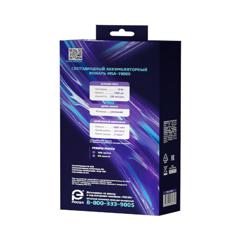 Фонарь аккумуляторный светодиодный "фотон - Х" MSA-1900X