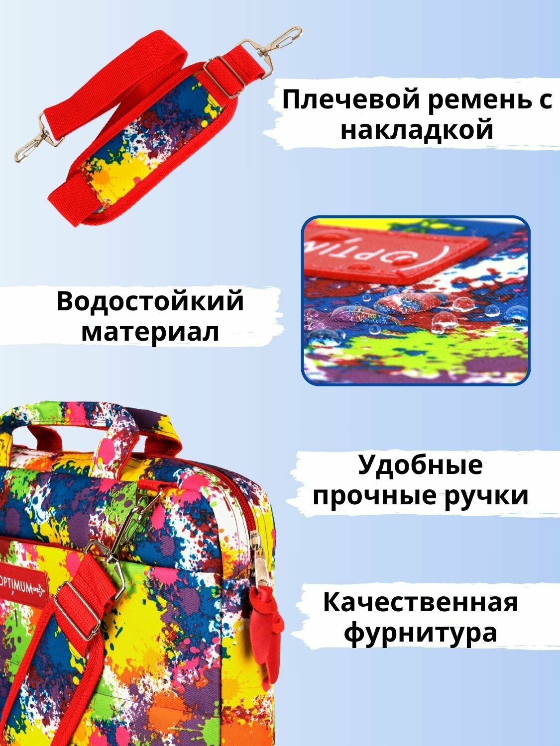 | Особенности | внешний карман, защита от боковых ударов, защита от воды, карман для телефона, отделение-органайзер, плечевой ремень, ремешок крепления |