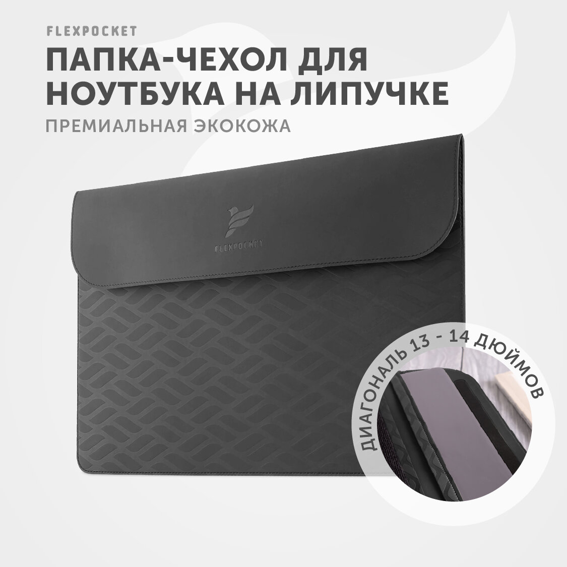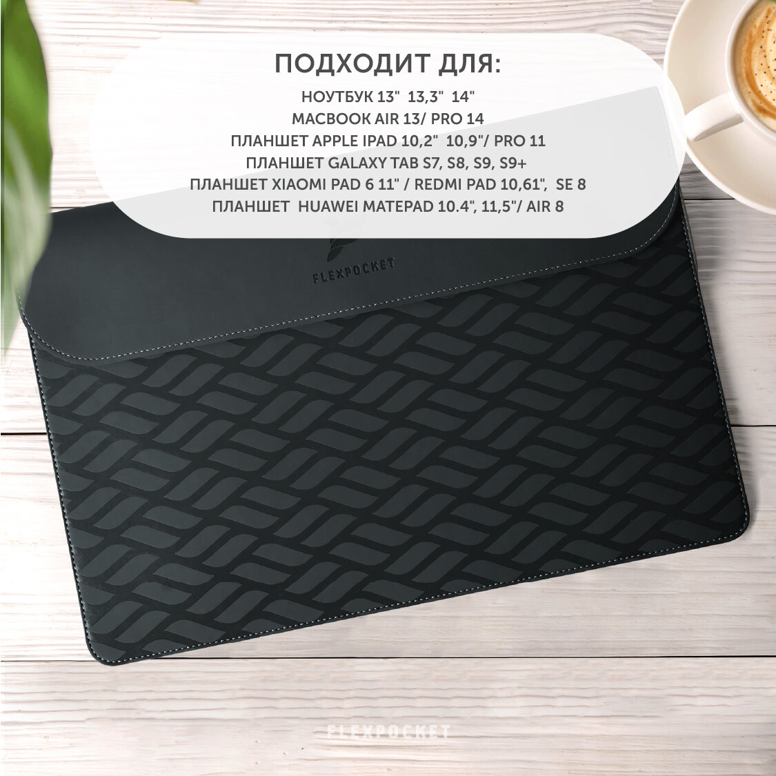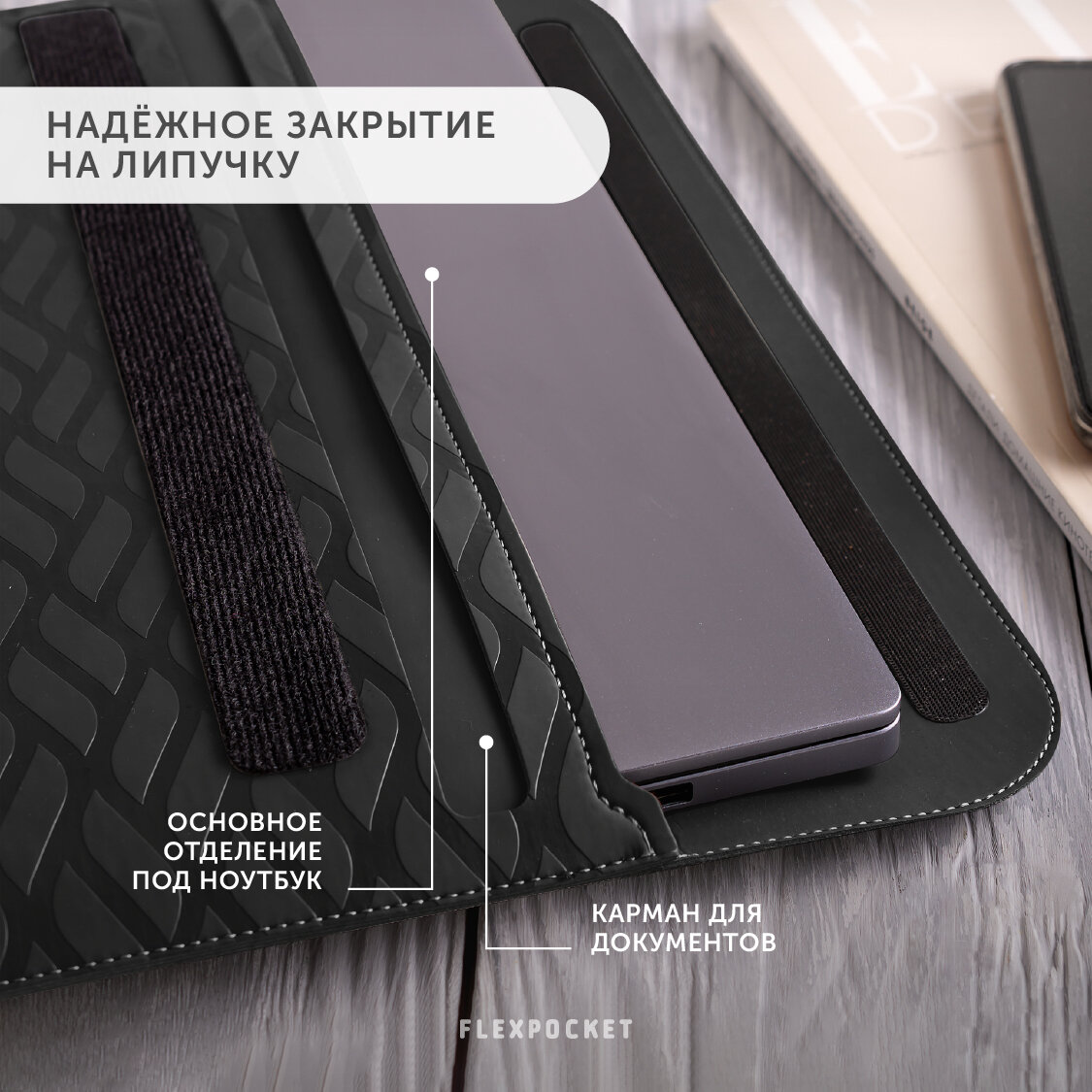 Папка чехол из экокожи Flexpocket для ноутбука 13 14 дюймов, сумка под ноутбук, цвет черный интересное:
