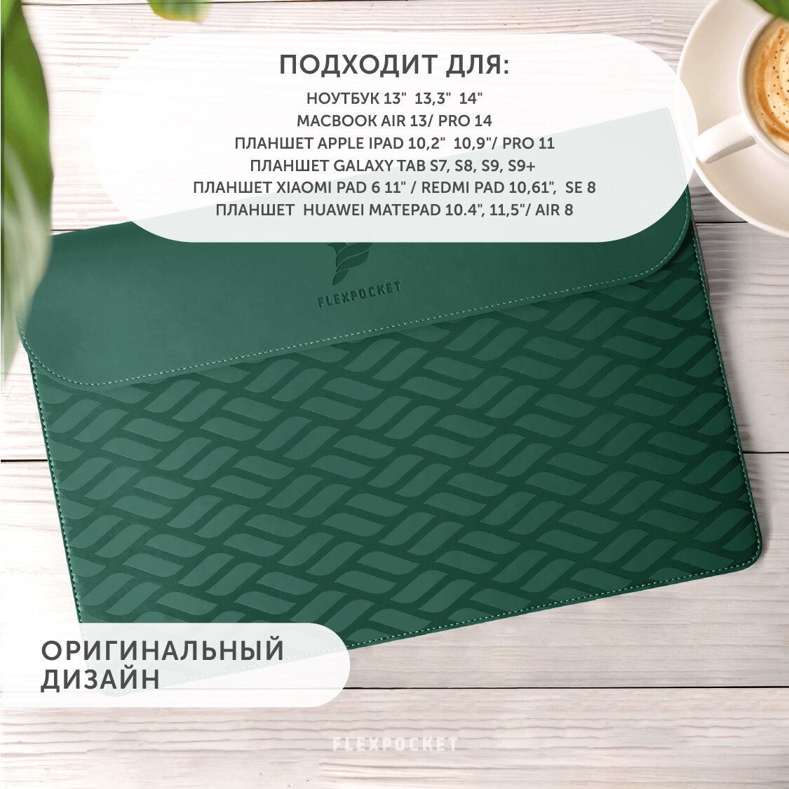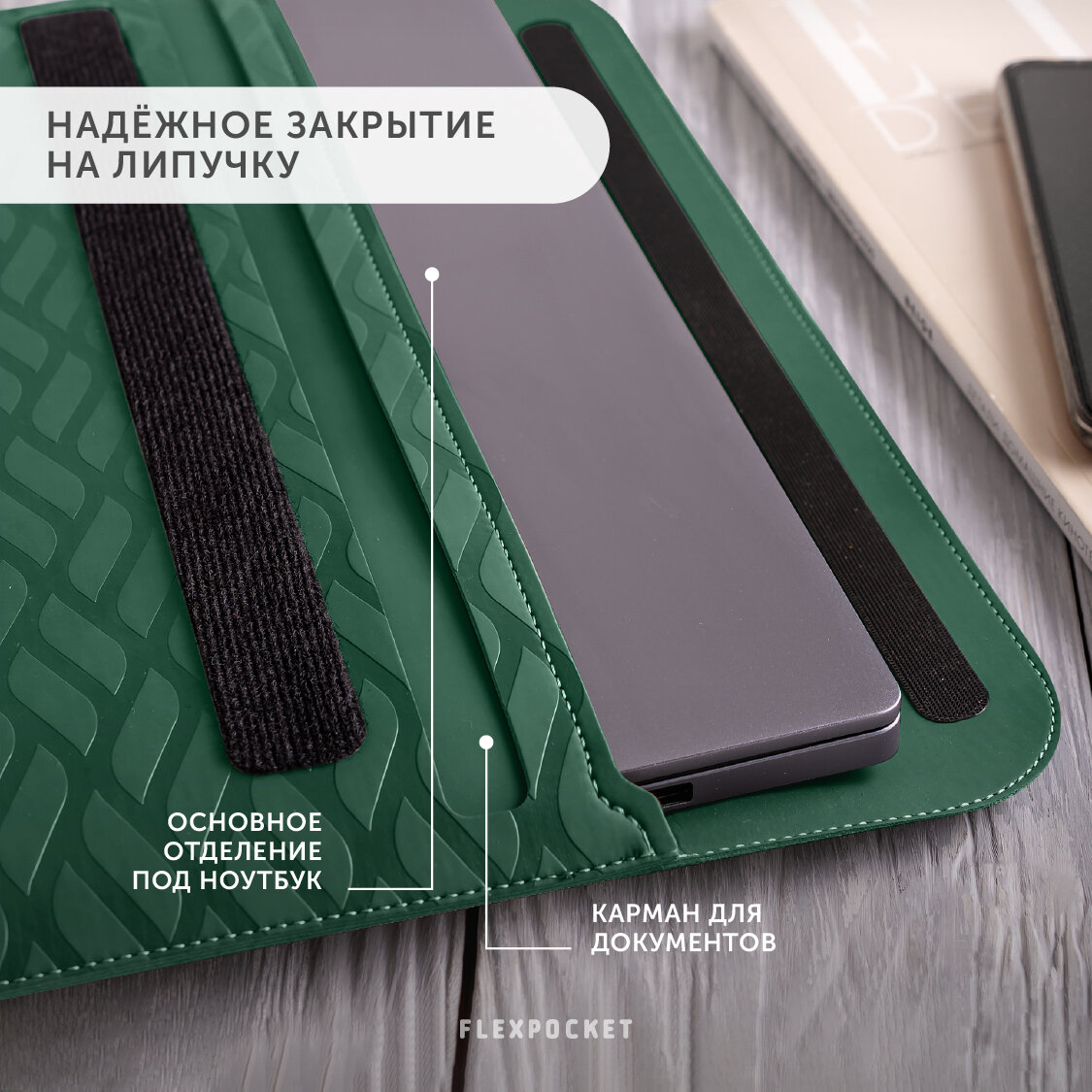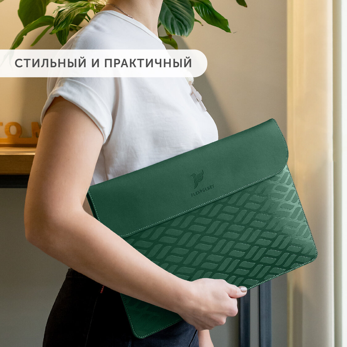 Папка чехол из экокожи Flexpocket для ноутбука 13 14 дюймов, сумка под ноутбук, цвет зеленый интересное: