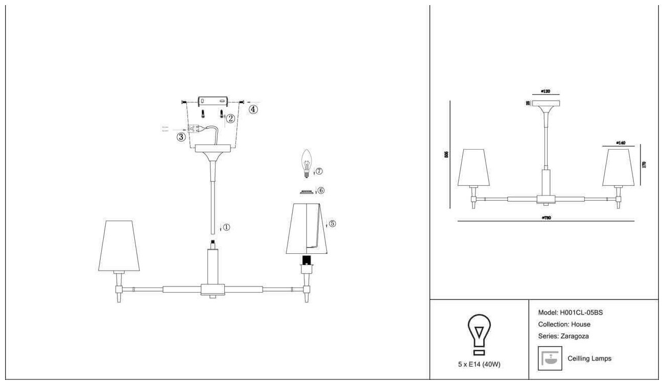 Люстра потолочная Maytoni House H001CL-05BS 5x40Вт E14