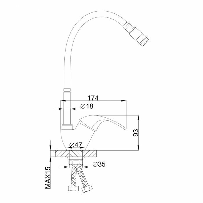 Смеситель для кухни 40к F4303-1 FRAP гибкий излив, гайка, боковая