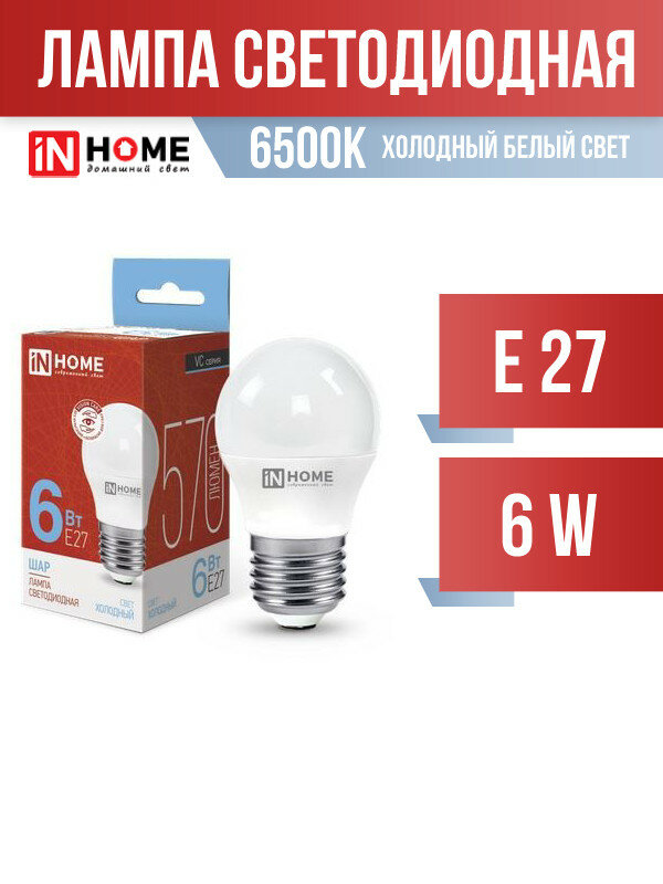 Светодиодная лампа IN HOME LED-ШАР-VC 6Вт 230В Е27 6500К 540Лм 4690612030654