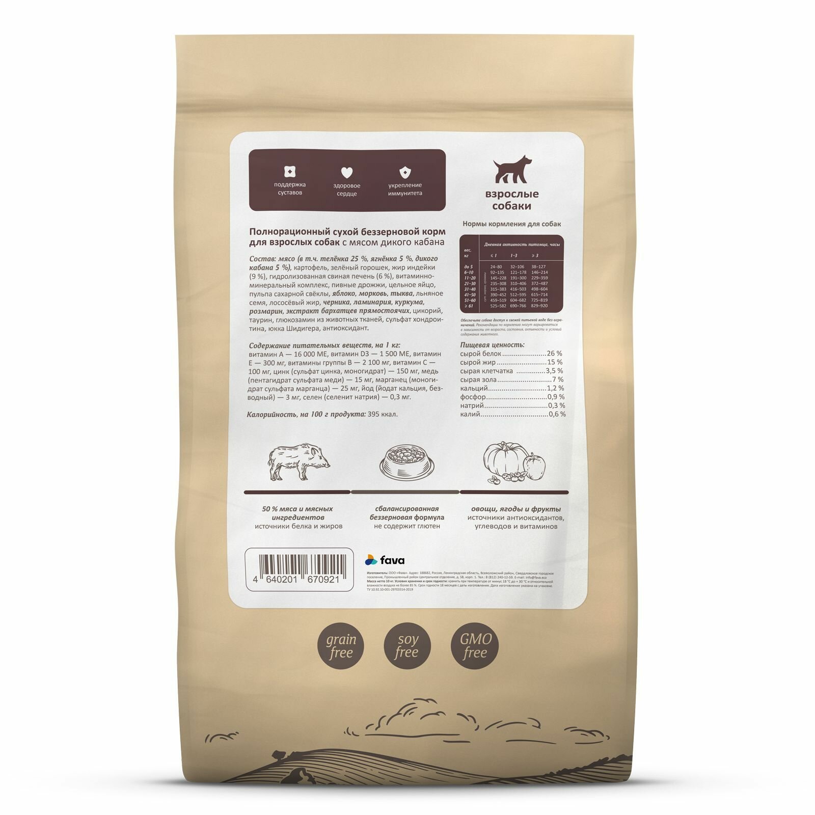 SAVITA беззерновой сухой корм для взрослых собак с мясом дикого кабана, 10кг