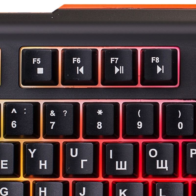 | Отзыв: | Весит на удивление много, так что при наборе на ней текста и при играх клавиатура нормально фиксируется в одном положении и не норовит съехать. Подсветка простенькая, но для бюджетной клавиатуры и так смотрится круто. Все F клавиши по FN сочетанию корректно выполняют свои функции. По соотношению стоимости и качества клавиатура высший класс, не жалею что купил, она просто отлично работает. |