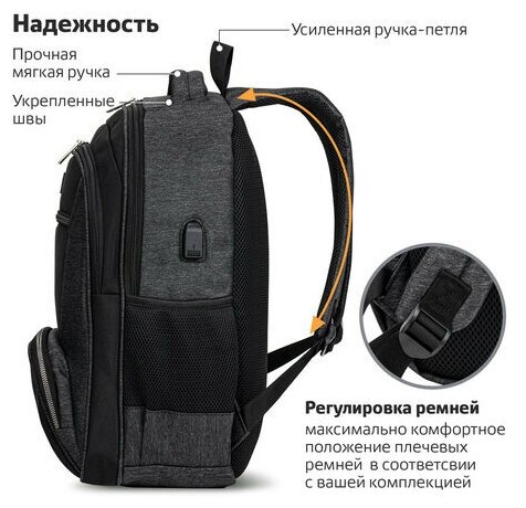 Рюкзак STAFF URBAN универсальный, с отделением для ноутбука, черный/серый, 46х30х18 см, 270750 интересное: