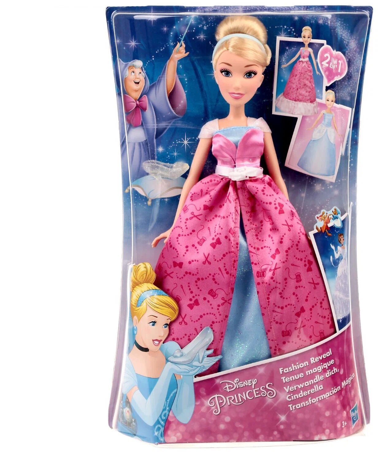 Кукла Hasbro Disney Princess Золушка в платье-трансформере, C0544 розовый/голубой
