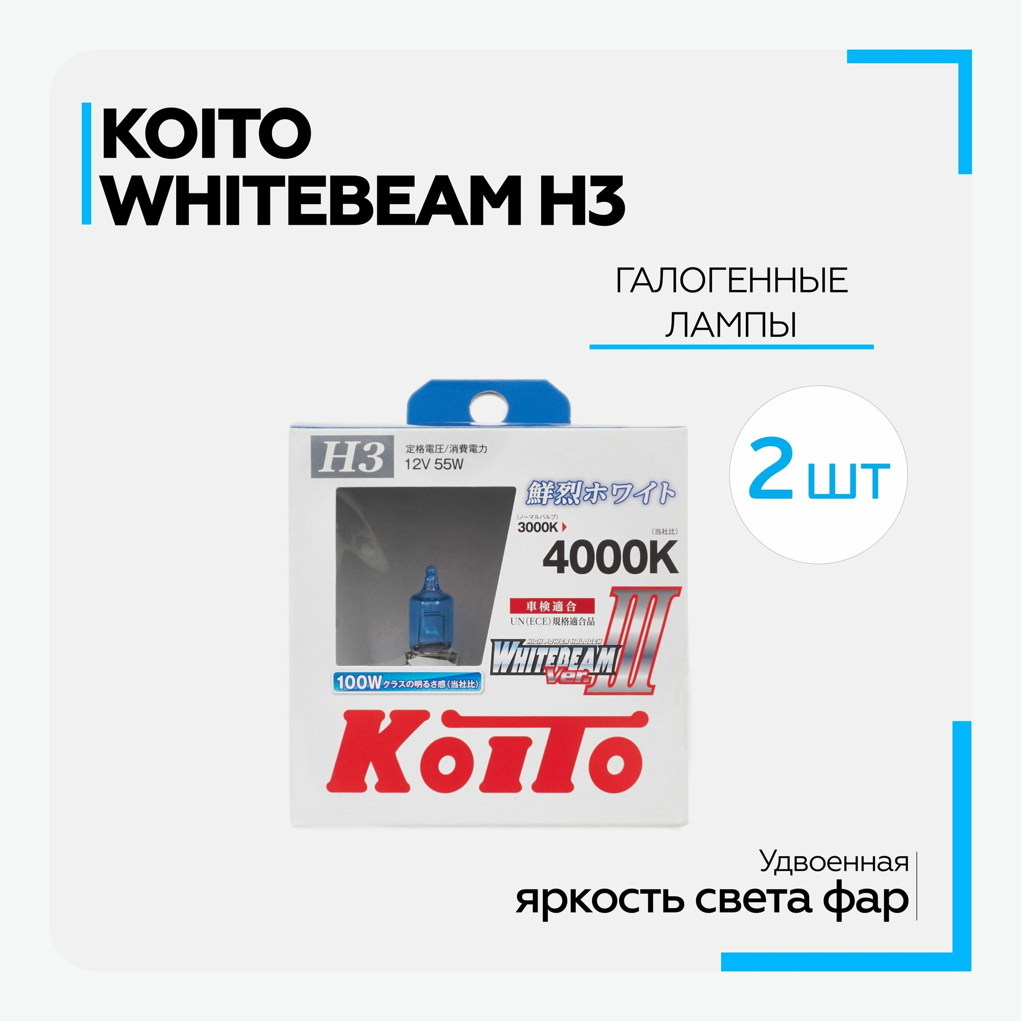 Купить Koito Галогенная автолампа Whitebeam III H3 12V 55/100W, 2 шт.