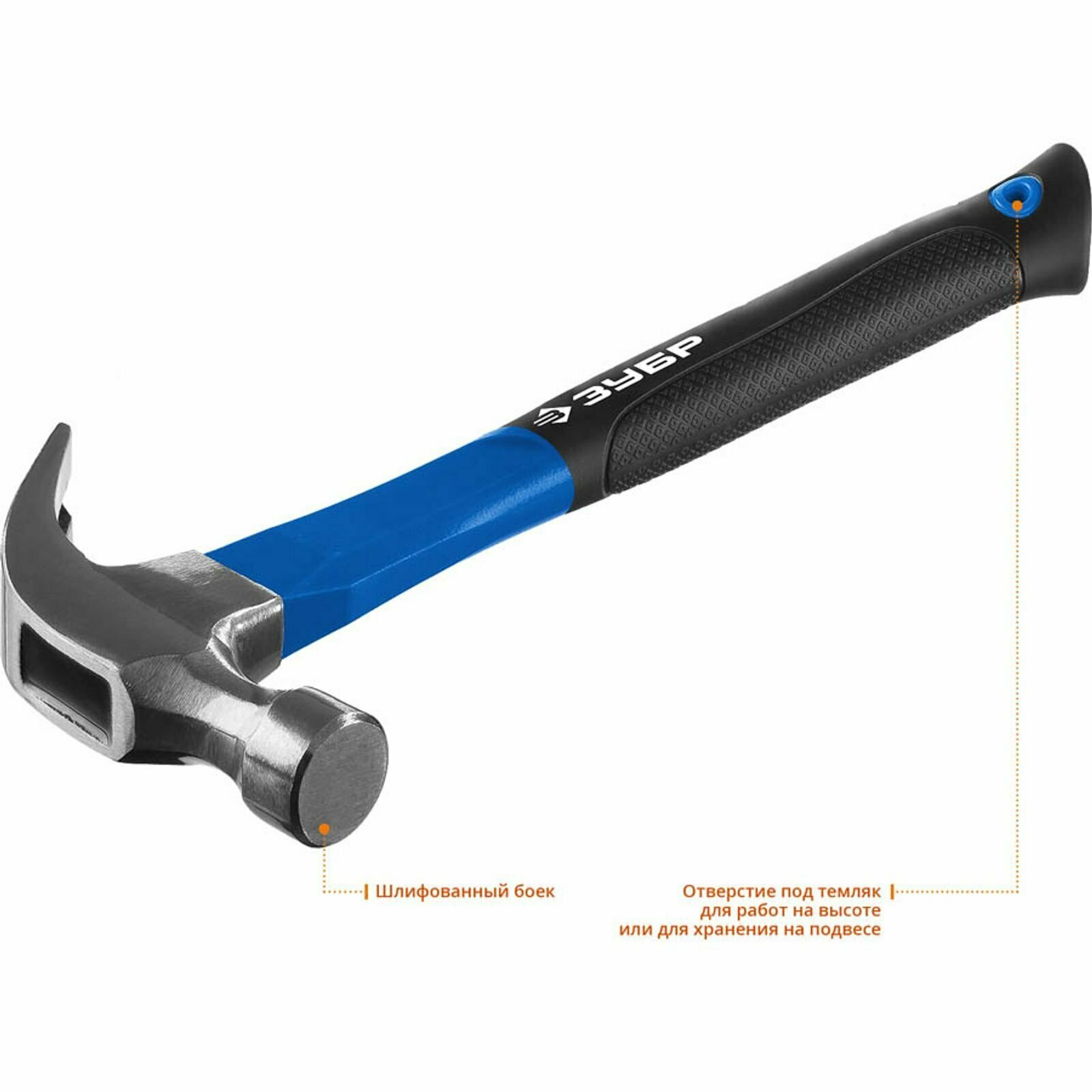 Молоток-гвоздодер Зубр 450 г с фиберглассовой рукояткой тип МСТ Проф 20235-450_z01 подарок на день рождения мужчине, любимому, папе, дедушке, парню