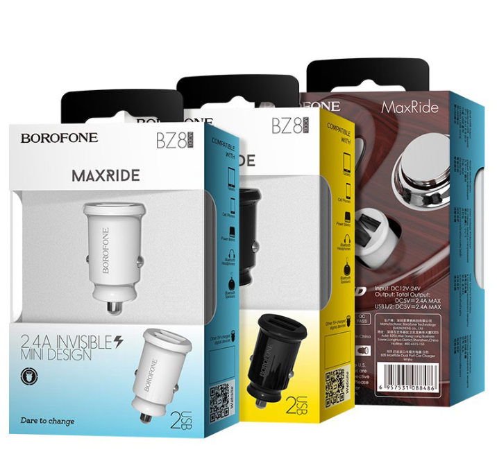 Автомобильное зарядное устройство BOROFONE BZ8 MaxRide, 2xUSB, 2.4A, белый