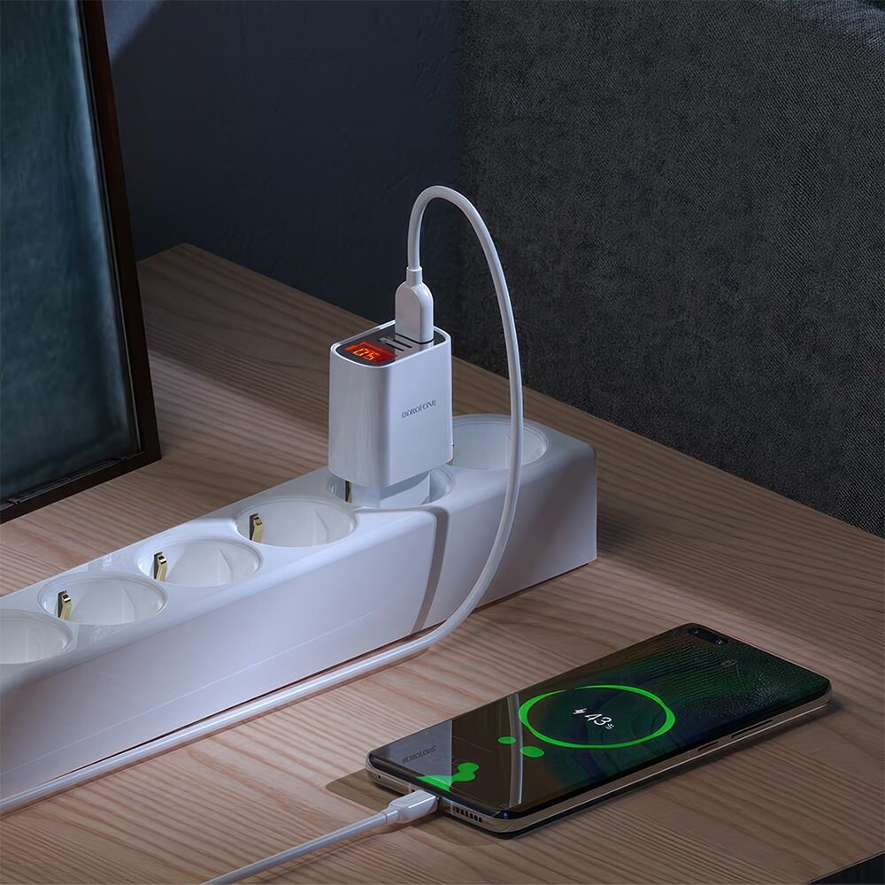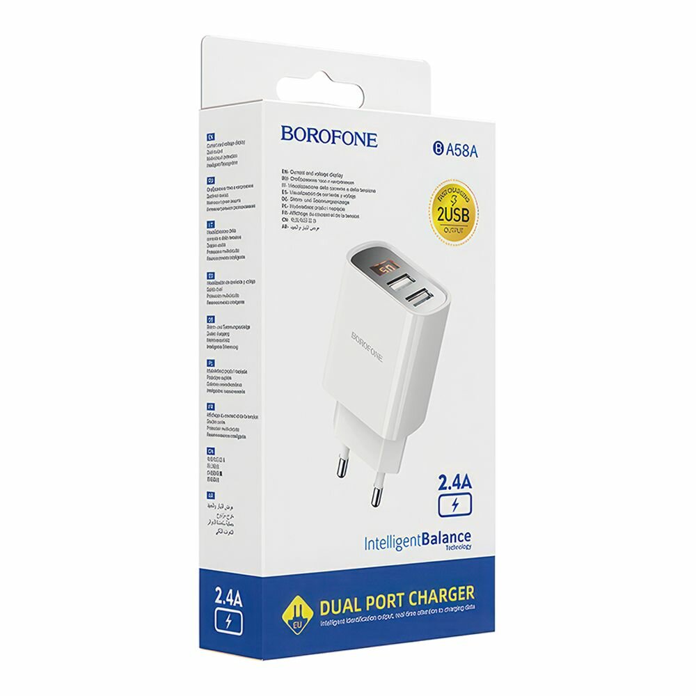 СЗУ BOROFONE BA58A Mighty 2xUSB, 2.4А, LED дисплей (белый)