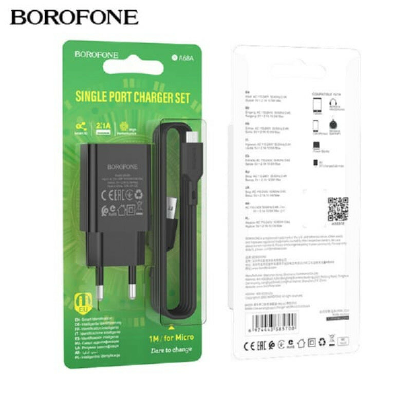 Borofone BA68A Glacier 1xUSB 2.1А + кабель MicroUSB Black 6974443385700 интересное: