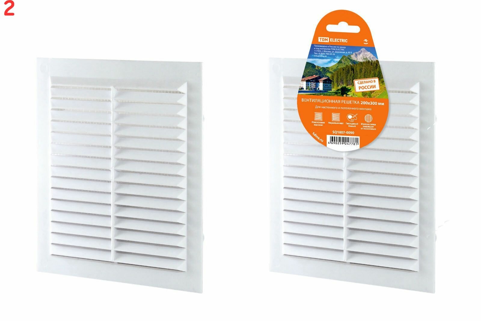 TDM ELECTRIC Решетка TDM, неразъемная, с москитной сеткой, 200х300 мм, белая, SQ1807-0090