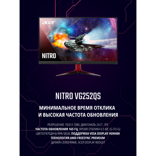 24.5" Монитор Acer Nitro VG252QSbmiipx черный [1920x1080 (FullHD)@165 Гц, IPS, LED, 1 мс, 1000:1, 40
