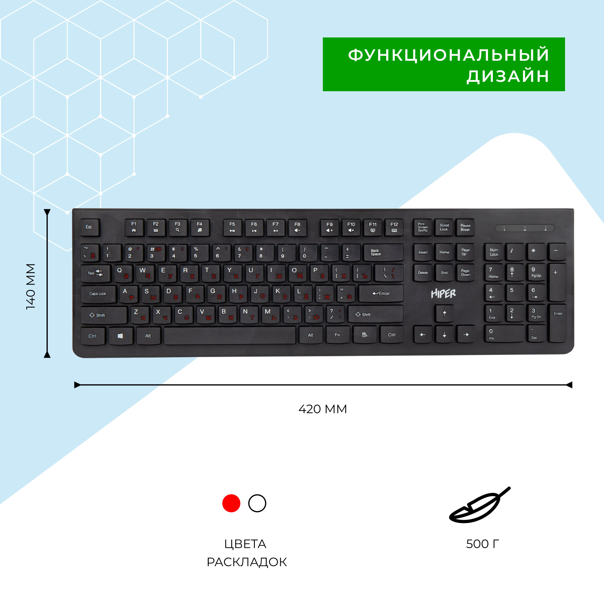 Проводная клавиатура HIPER OK-4000 / мембранная / USB / 104 клавиши / 1,5 м