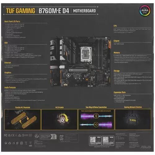 Материнская плата ASUS TUF Gaming B760M-E D4 B760 Socket-1700 4xDDR4, 4xSATA3, RAID, 2xM.2, 2xPCI-E16x, 4xUSB3.2, DP, HDMI, 2.5Glan, mATX