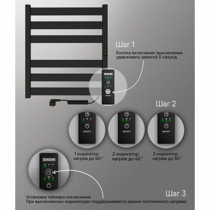 Indigo Электрический полотенцесушитель INDIGO LСLOKS5E60-50BRRt Oktava Slim 5 без полочки, черный