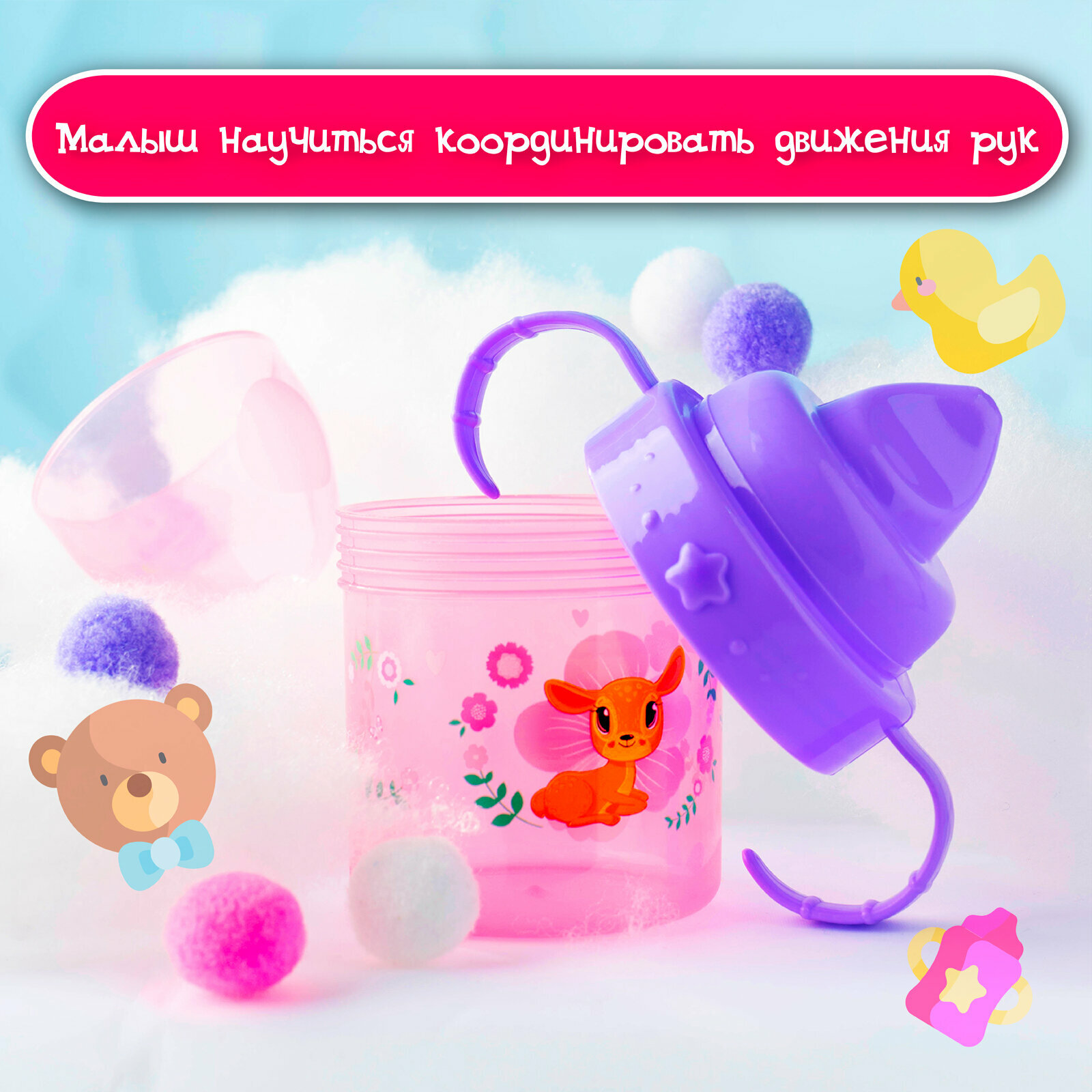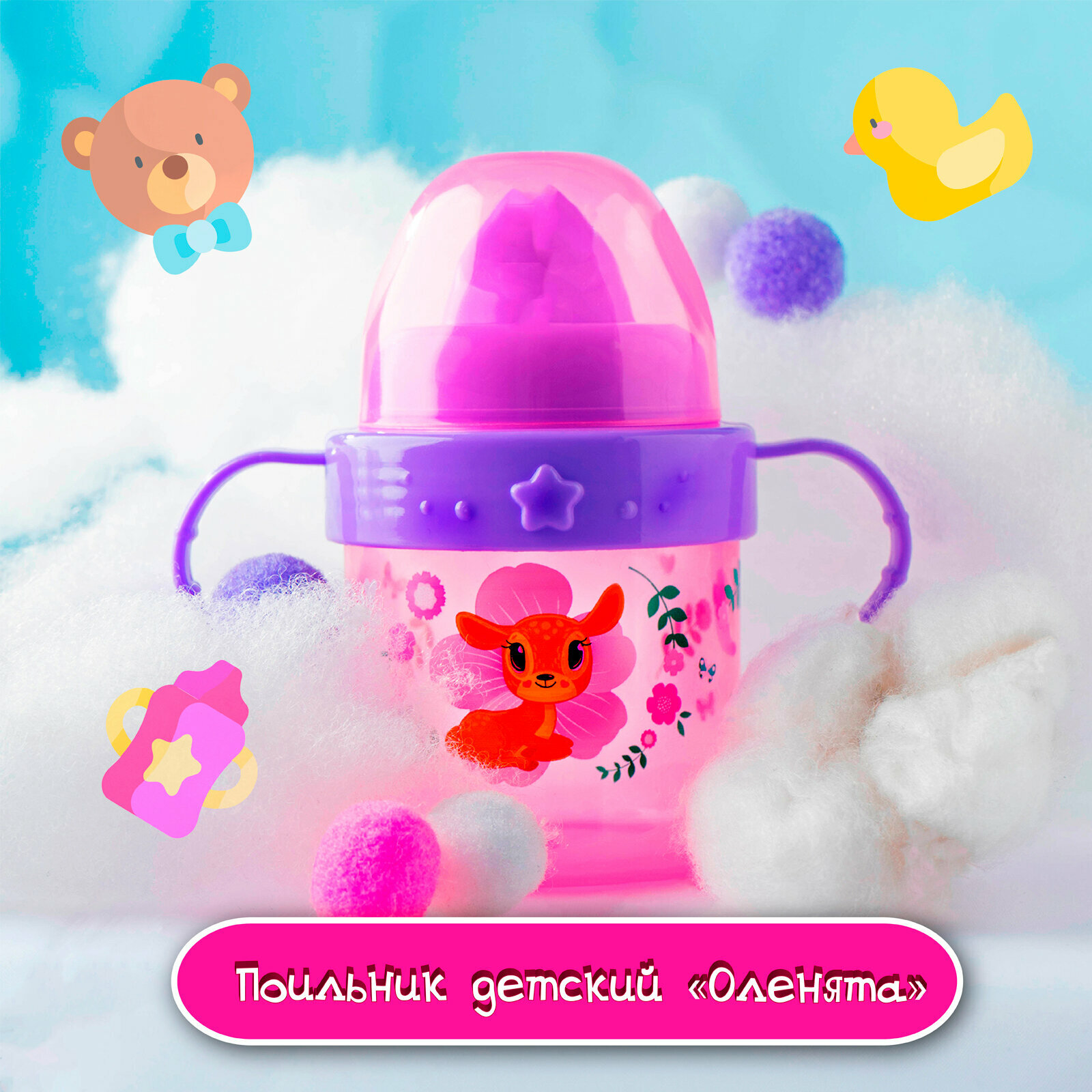 Поильник детский с твёрдым носиком Оленята. Мамы и малыши, с ручками, 150 мл, цвет розовый