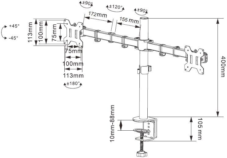 | Плюсы: | Неплохой кронштейн, за хорошую цену. Подойдет в тех случаях, когда нет необходимости менять положение монитора. Фурнитура для прокладки кабелей. |
